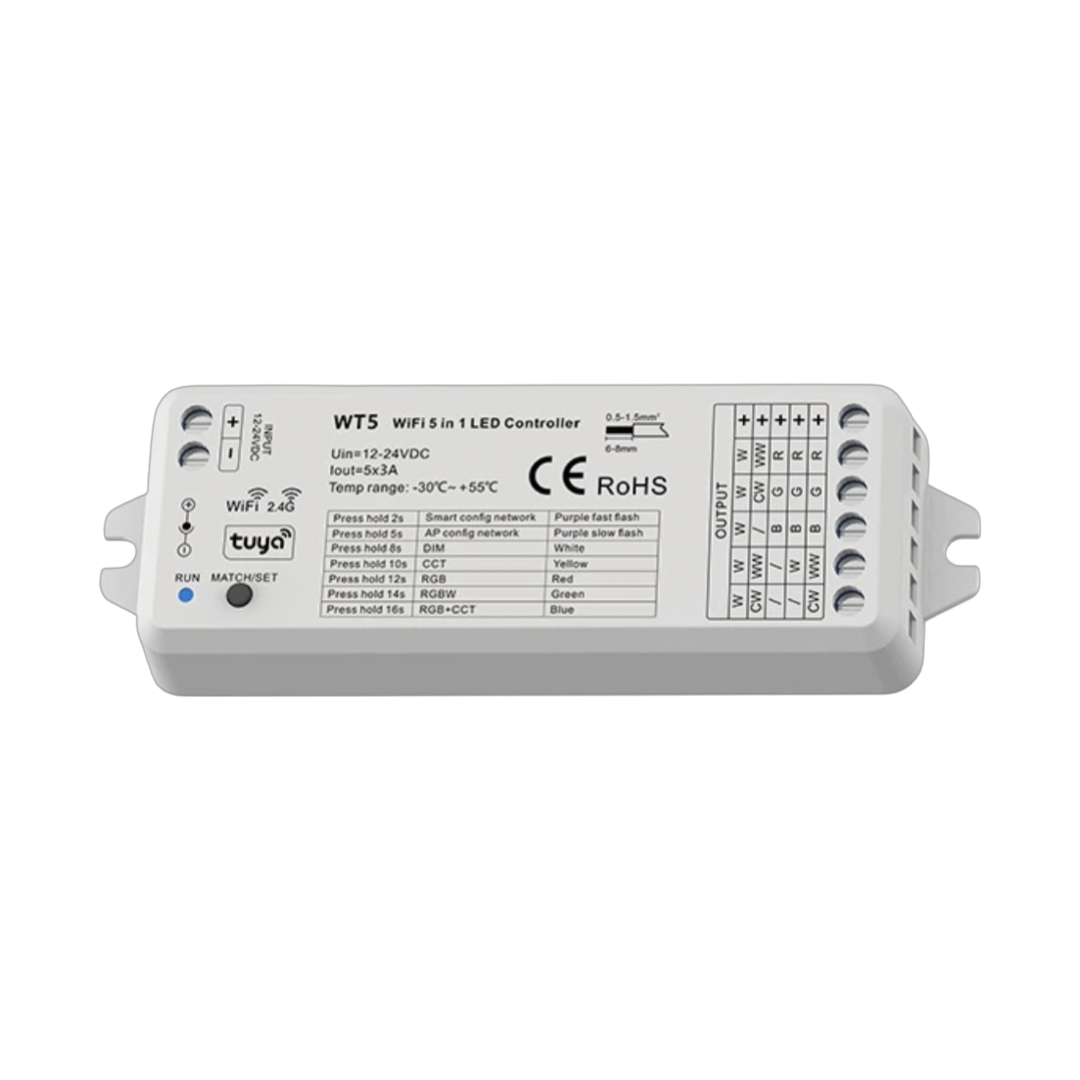 LED MAN, Контроллер диммер WT5, Wi Fi, 5CH (SINGLE, CCT, RGB, RGBW, RGB+CCT)