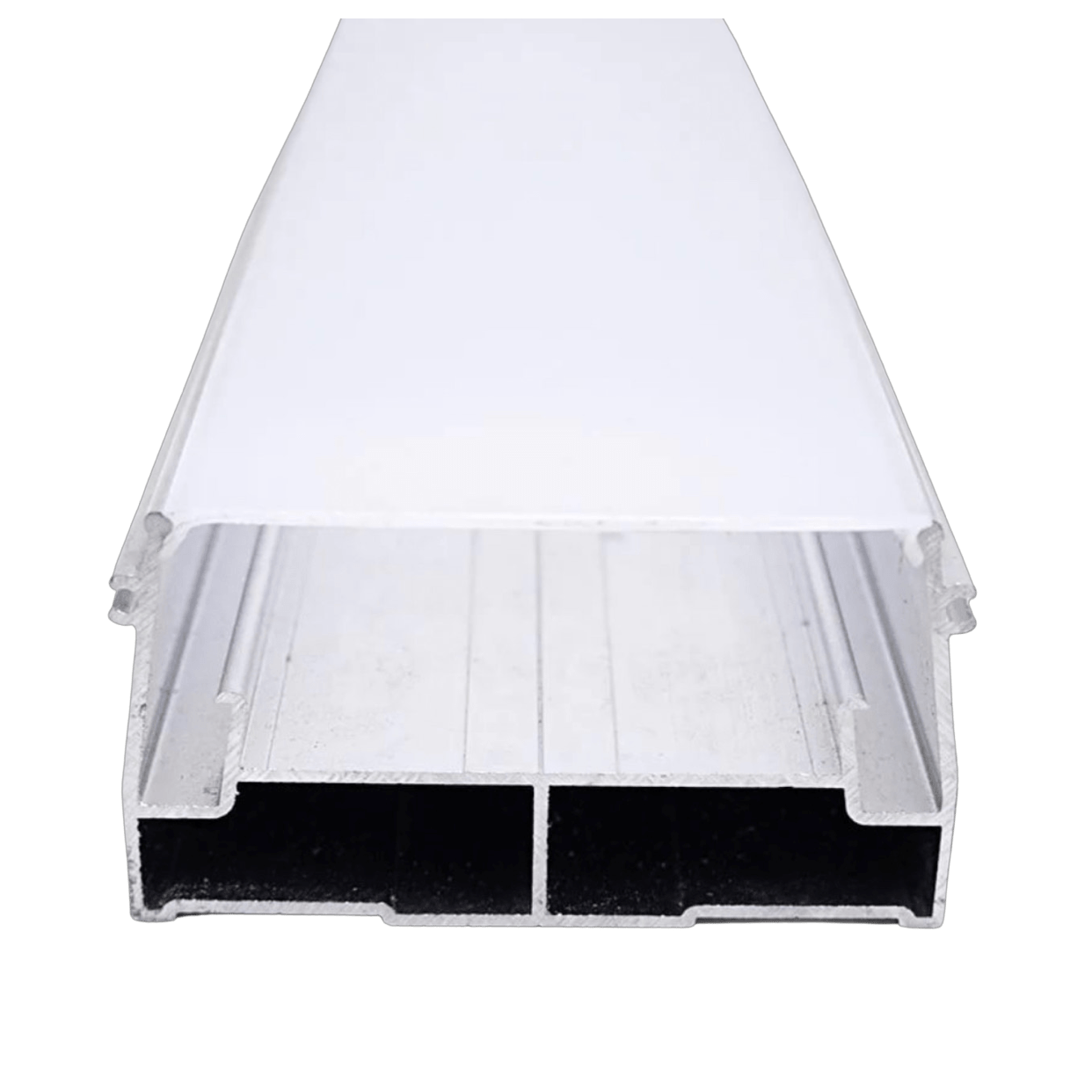 Белый поликарбонатный экран для профиля FLEXY LINE 50 – это классическое решение для создания идеально ровного и рассеянного света. Он эффективно маскирует точечные светодиоды, превращая LED-ленту в сплошную световую линию.
